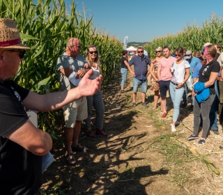 Konkrétně ke kukuřici a vedení pokusu promluvil již vedoucí rostlinné výroby společnosti Tagros Jaroslav Maitner. Předplodinou před kukuřicí byl jarní ječmen, po jehož sklizni následovalo zásobní hnojení draselnou solí a trojitým superfosfátem, dále zimní orba a na jaře dvakrát urovnání pozemku kompaktorem (mezi tím ještě aplikace močoviny). Setí proběhlo 4. května (90 tis. zrn na hektar), 15. června následovalo přihnojení ledkem a až 9. června byla provedena herbicidní ochrana (v souvislosti s letošním vývojem počasí). Ošetření proti zavíječi kukuřičnému již druhý rok v podniku nedělají. Důvodem je výška kukuřice v době signalizace tohoto škůdce, kdy by aplikační technika ve vysokých porostech nadělala více škody než užitku.
